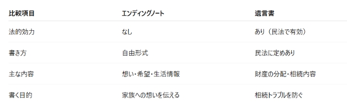 - エンディングノートと遺言書の違い