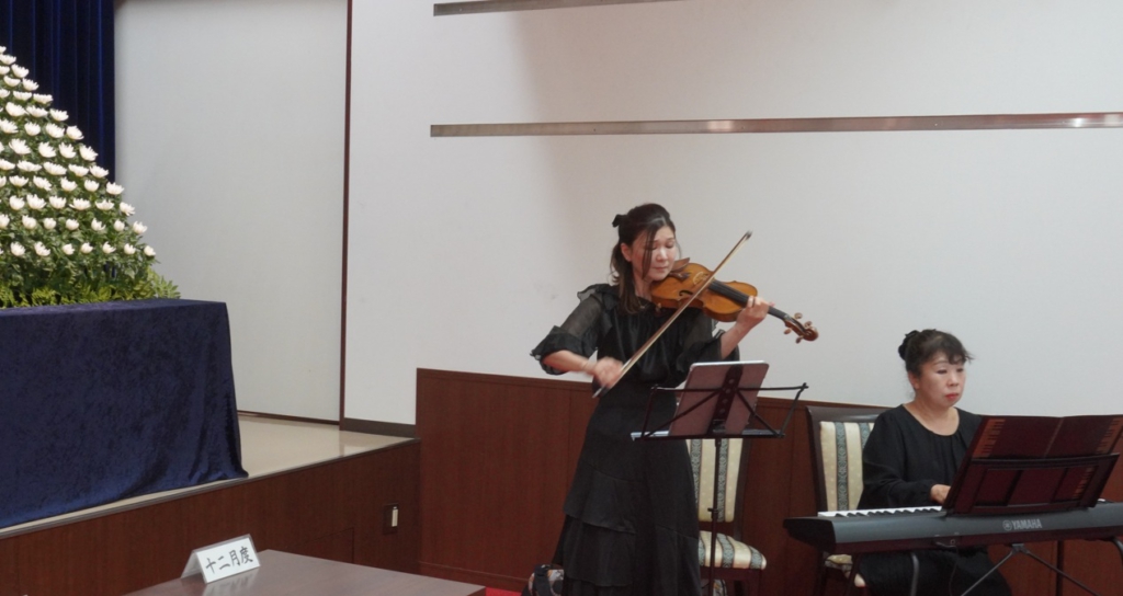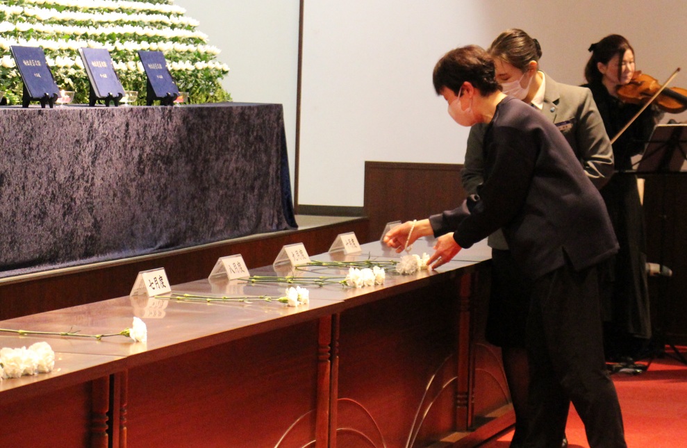 追悼式典の中では、献灯や献奏、献花の儀式を行い大切な故人様との歩んできた人生を皆様に振り返っていただくこと、そして八光殿のスタッフ含め、全員でご葬儀をお手伝いした故人様に対して哀悼の誠を捧げました。