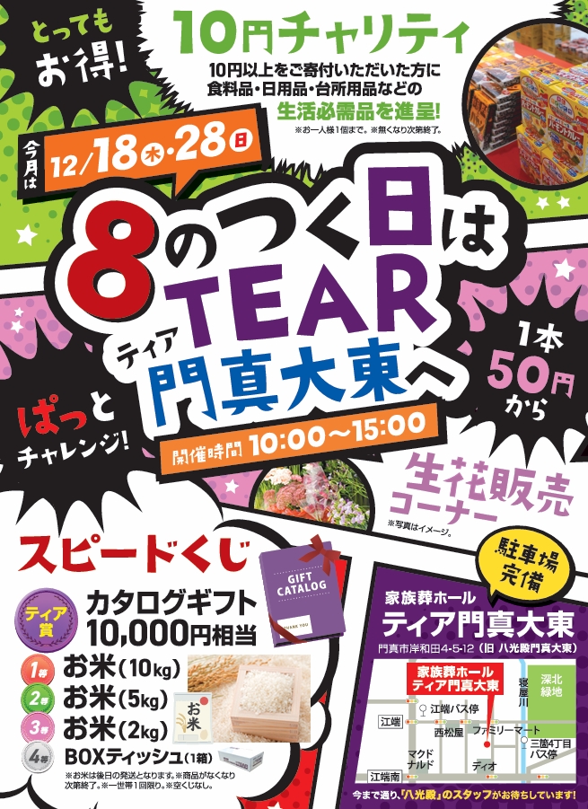 地域の皆さまには、日ごろから「家族葬ホール ティア門真大東」を温かく迎えていただきありがとうございます。