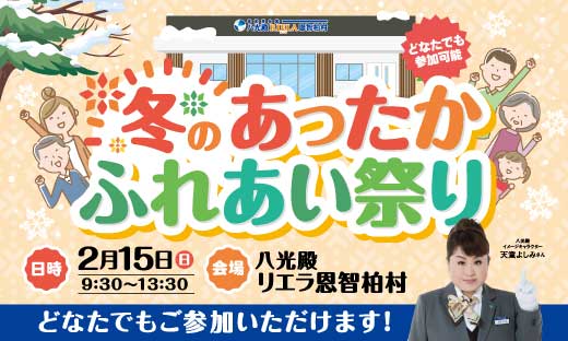 八尾市の「家族葬会館 八光殿リエラ恩智柏村」のイベントとして2月15日(日)に「冬のあったか ふれあい祭」を開催いたします!