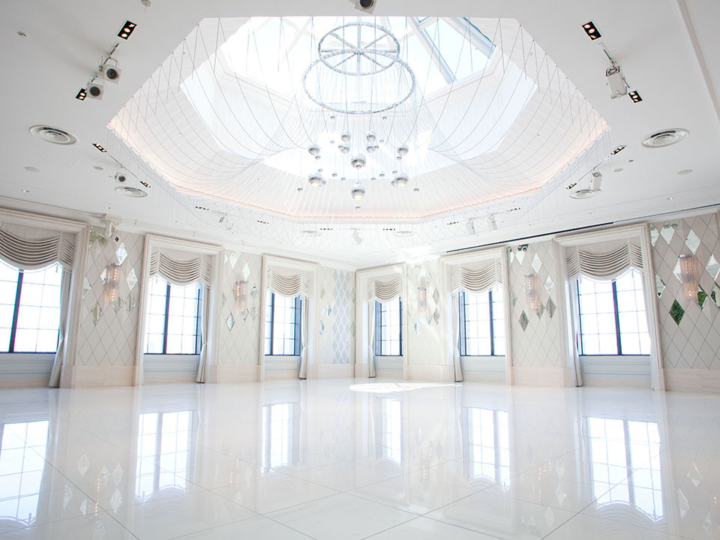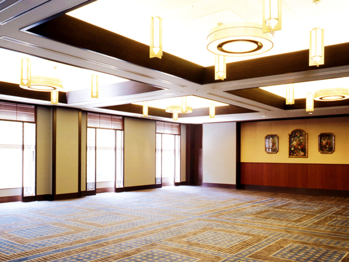 お別れの会の会場は着席で最大約200名、立食で約240名まで対応可能。様々な規模のお別れの会に対応でき、故人を偲ぶ厳かな社葬に適した空間です。