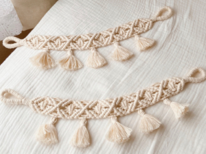 マクラメとは、アラビア語で「交差して結ぶ」という意味で、編み棒などを使わず、手で編んだり結んだりする結い技法です。