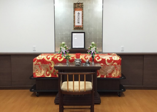 大切な方に万が一のことがございましたら、まず八光殿までご連絡ください。(24時間365日対応)寝台車にて、故人様がいらっしゃる場所(病院・施設・警察など)までお迎えに上がります。その後、お帰り先であるご自宅や、八光殿の安置室 に故人様をご安置し、お線香やろうそくなどの枕飾りのご準備と、故人様に対して保全剤と綿花で包んだドライアイスでご処置いたします。ご処置後、喪家様が希望される会館と日時の打合せを行います。