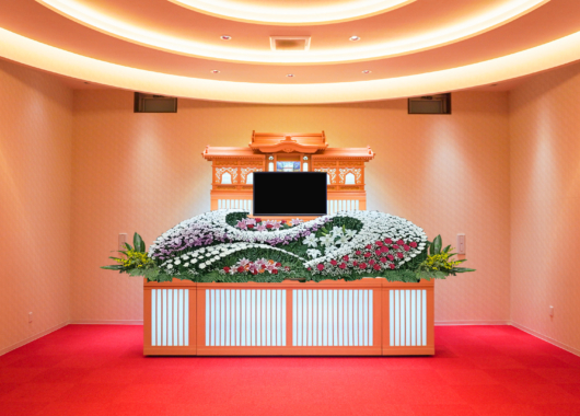 式場にて通夜式、葬儀式を執り行います。お越しいただきました皆様が 故人様との最後のお時間をお過ごしいただけるよう、スタッフが皆様の想いに寄り添いサポートいたします。葬儀式終了後は御棺をご霊柩車にお乗せし、火葬場へとご出棺いたします。