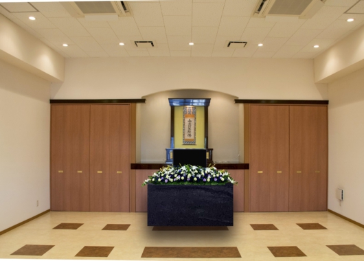 式場にて通夜式、葬儀式を執り行います。お越しいただきました皆様が 故人様との最後のお時間をお過ごしいただけるよう、スタッフが皆様の想いに寄り添いサポートいたします。葬儀式終了後は御棺をご霊柩車にお乗せし、火葬場へとご出棺いたします。